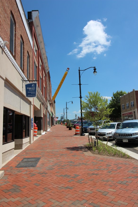 Drove into town and found this giant pencil outside the office supply store. At least there were cars here, but still no sign of life.