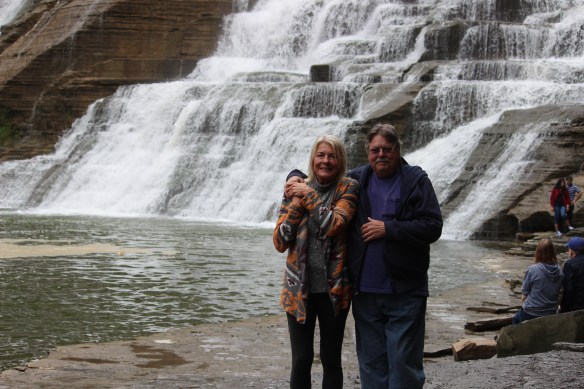 We moved west from Albany, to the beautiful upstate New York town of Ithaca, to visit with Chris’ friends from 35 years ago when she first landed in the US. It was a Thursday move, and it took 8 hours for a 3 hour trip, ( Steve had meetings and conference calls along the way), Rest areas are a life-saver for us when necessary, so well landscaped and a good opportunity to put a slide out and make lunch. Very comfortable.