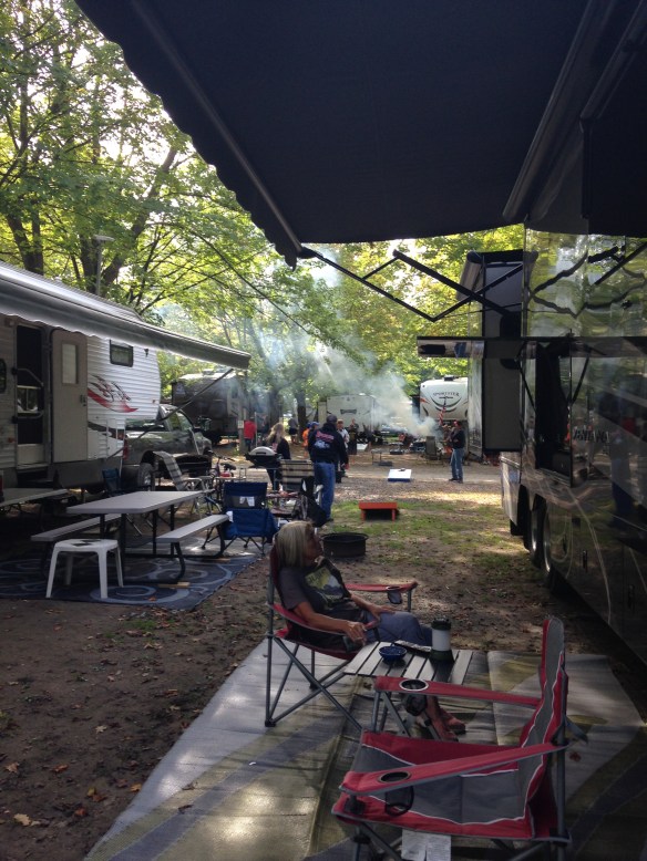 We met our neighbors, who like the last campground, either us or them were turned the wrong way, and we would face them every time we left the coach. Difference was, these people were really nice, friendly and with a big group of friends who occupied 5 campsites around us. Some of those friends from nearby remembered fondly the bar in Cortland that Chris once co-owned. It was a crazy place in town where people tended to let loose to sounds of live bands, our kind of people.