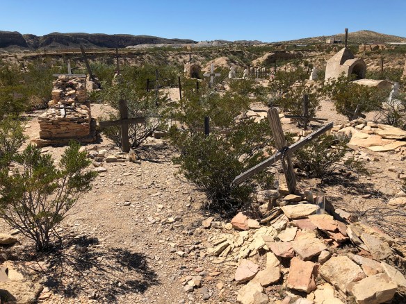 This was the Terlingua cemetery next to the Ghost Town where those buried had died in mining accidents in the late 1800’s. Those that were still living about 100 of them were laying low in teepees and brightly colored school buses, reminiscing about the 60’s. Wondered whatever happened to them. Anyway, they’ve found a peaceful and quite lovely part of the country to ‘hang”