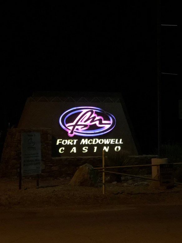 Went to the Fort McDowell Casino just down the road for dinner and some gambling. The dinner was an Italian buffet for $18 each, and with the $15 in free play we received upon arrival, Steve won $38 and free dinner