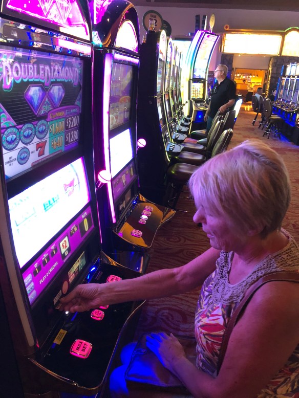 Chris hoping to win on the slots
