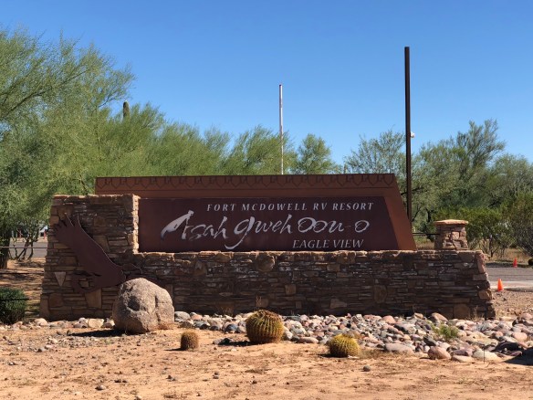 We reached Eagle View RV Resort in Fort McDowell AZ from Tucson inside of two hours. we were booked for a week and intended having our coach washed and waxed by the mobile RV cleaning service recommended by Outside Our Bubble a good source of information we’ve used before.