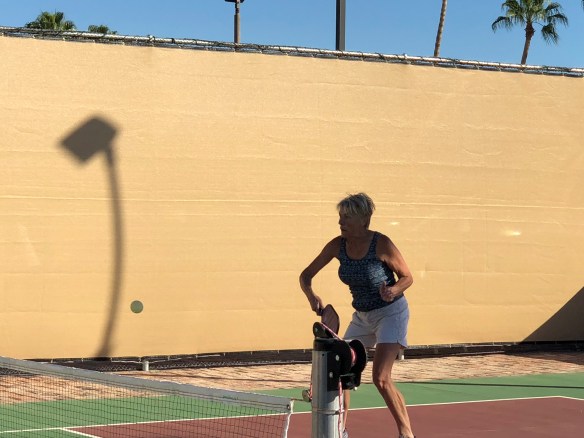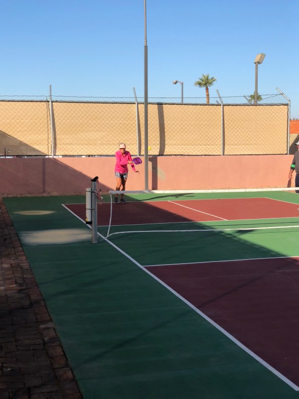 Chris jumps right into Pickle Ball the next morning after we arrive