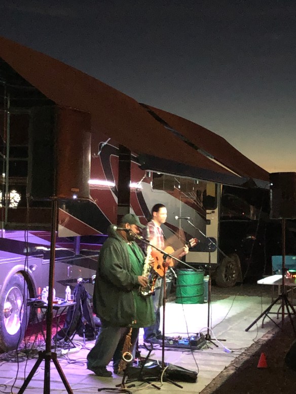 Notes From Neptune is the entertainment. Guitar and Sax duo that are pretty incredible. Our host David jumps in to play Cajon