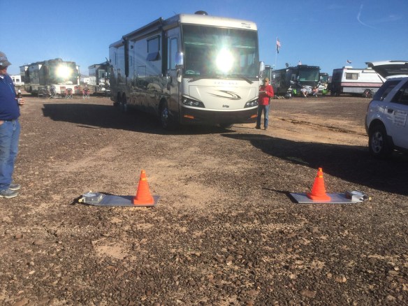 Steve signed up to get the coach weighed that afternoon. we were under weight and pretty balanced over all (rear axle left and right were exactly the same). We have been wanting this to make sure we were within the axle rating and for the correct tire pressures.