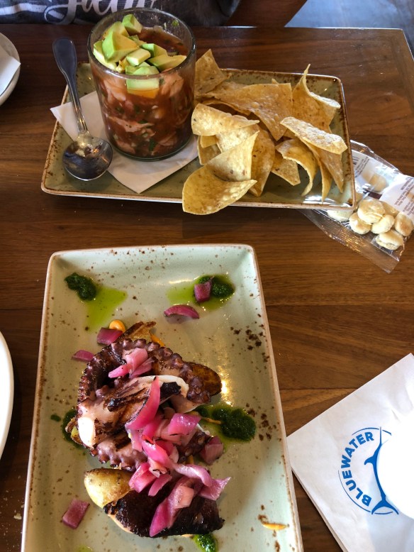 The Bluewater Grill was worth the drive, cerviche, octopus, lobster and crab cakes.. Expensive lunch but great food, and that’s what counts. On the road you don’t always have a great choice of restaurants, so we take advantage when we do.