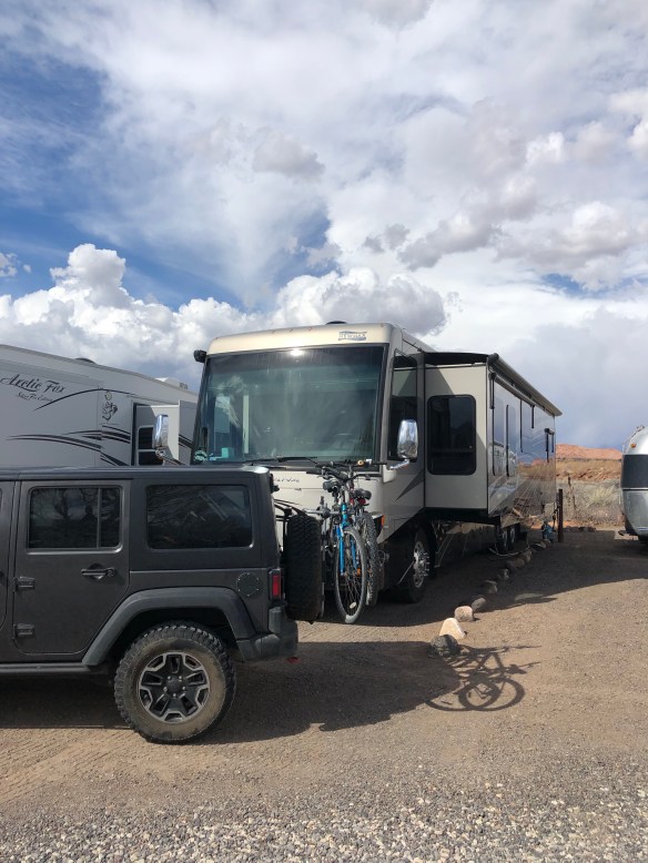Torrey UT lies at the intersection of Rte 12 and 24, so we met up with the route we had planned previously. We arrived at Thousand Lakes RV Park which is 8 miles outside the Capital Reef National Park.