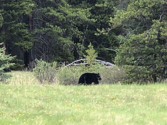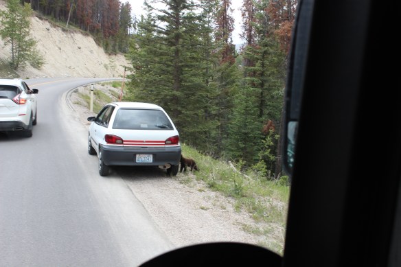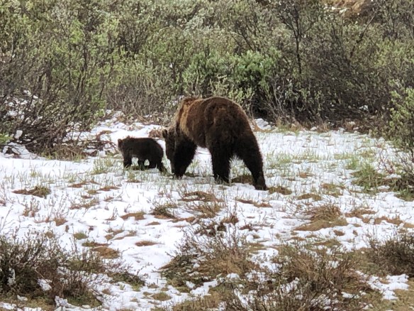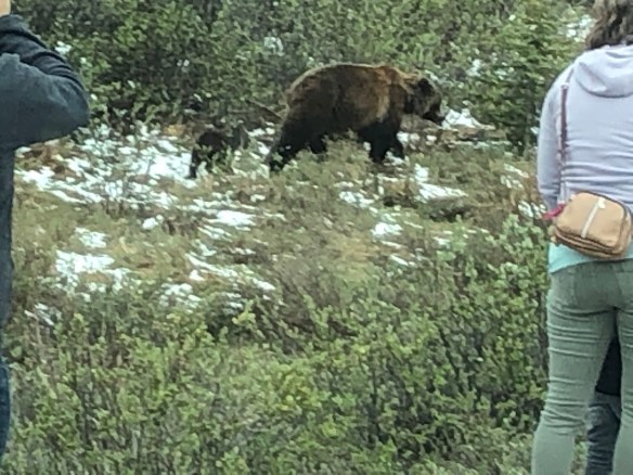 We started the day with our first bear sighting. When you see a few cars stopped in the middle of the road, you know there’s something to see. This was a grizzly with her cub