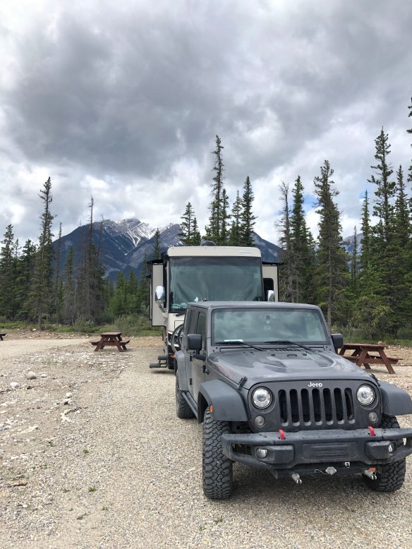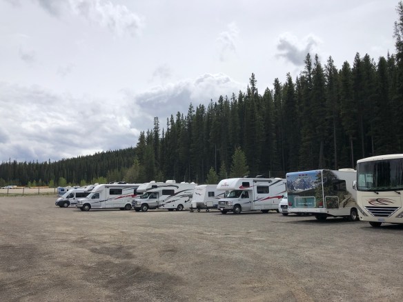 We arrived in Jasper after a spectacular day only to find all the campgrounds full. Thankfully accommodations are provided by the park to provide overflow parking, again.