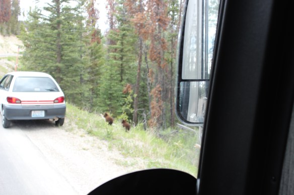 There were actually 2 of them, and we were just standing there watching them, bear spray in the coach down the road