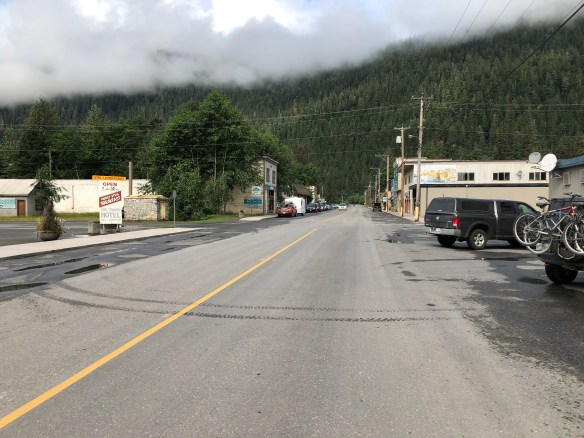 Decided to drive into the next town, Hyder AK, a mile away, and we were back in the US again. There’s no customs on this border as there’s literally no-where to go from here, but there’s customs on the return into Canada.