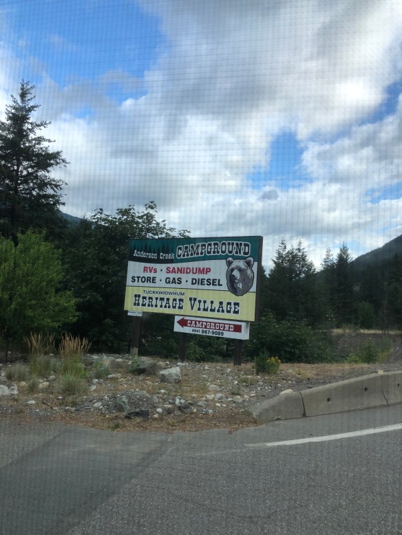 We left the Prince’s and headed south towards Vancouver. On the way we stopped in a rest area which claimed to have part of the Roman wall that made up Tintagel Castle in England. The castle is still standing over there so we’re not sure what prompted the owners to part with a piece of the wall just so it could be displayed in a rest area no less.