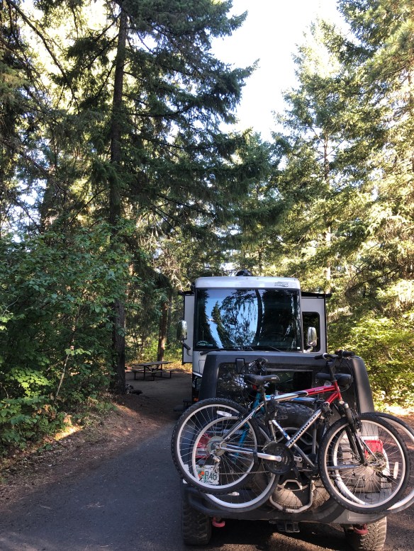 We got kicked out of Washington (well our campground at least) for being non tribal members, so we headed to our next new state. The other side of the Columbia River is Oregon so we crossed over and traded the Columbia River for the Hood River and partial hookups at the Toll Bridge Park Campground at the base of Mount Hood.
