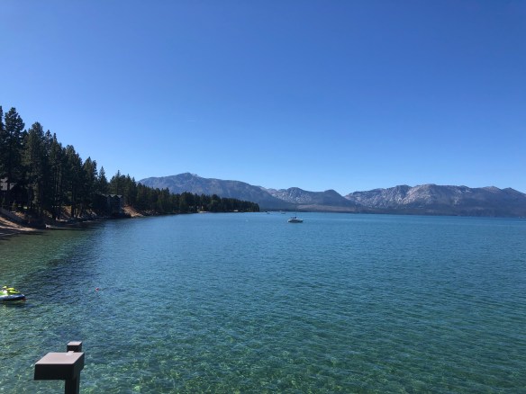 We drove the Jeep 45 miles to Lake Tahoe through the mountains and arrived on the east shore and Cave Rock