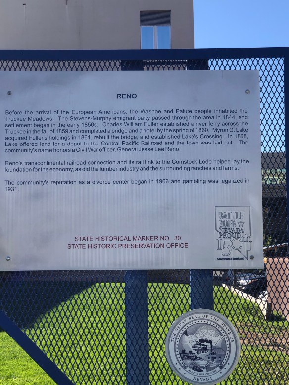 Just before Reno we drove over the Donner Pass, a mountain pass in the Northern Sierras above Donner Lake, also a big ski area, but named for the ill-fated Donner Party who became trapped here in 1847