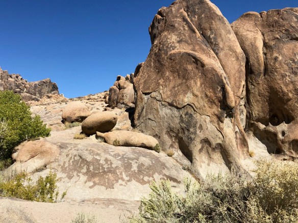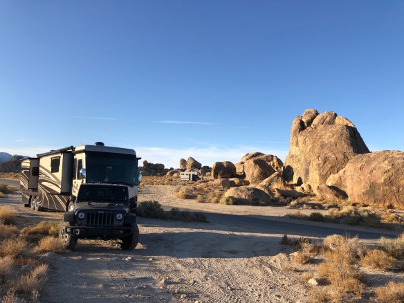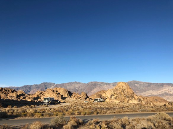 We drove the 13 mile scenic route around Alabama Hills, off Movie Rd. and found families of campers snuggled into spots all over the area, enjoying the scenery and peaceful surroundings