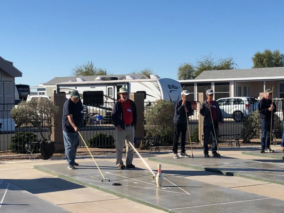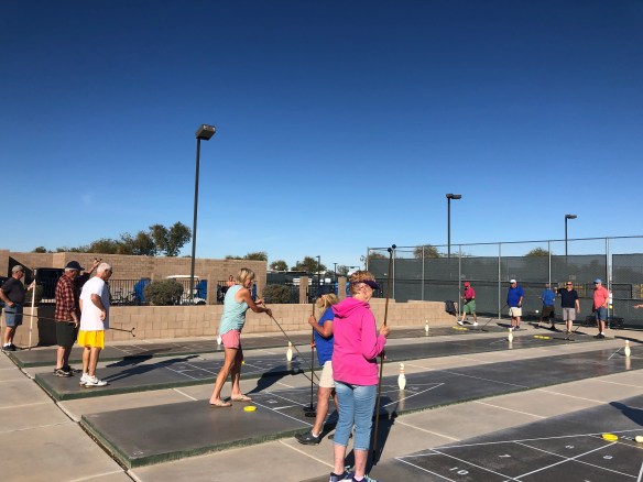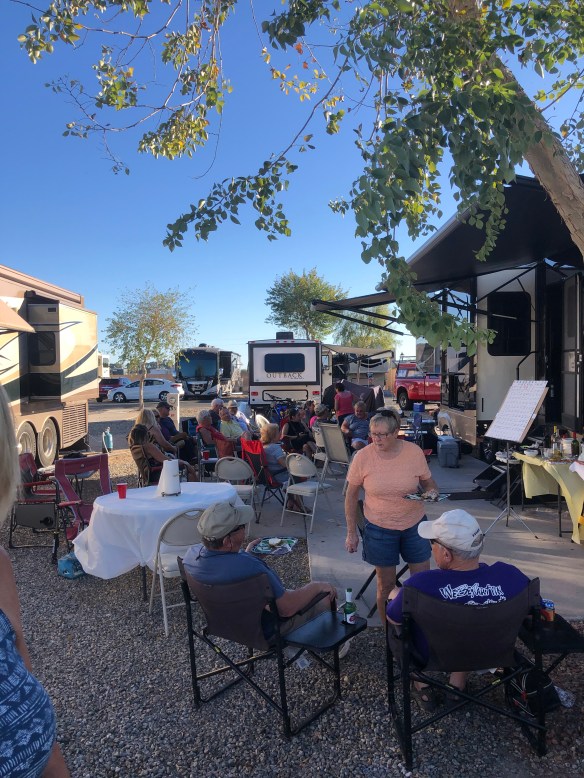 After our month of boon docking/balloon watching/4 wheeling we decided to head back to Yuma for some fun and games at Del Pueblo RV Resort and settled in with the group from Idaho surrounding us and Utah across the street