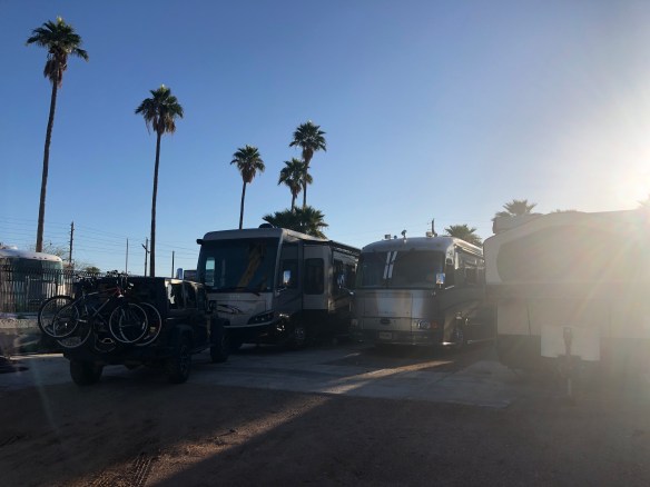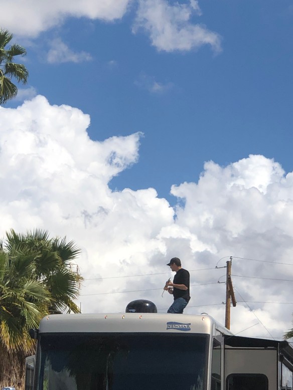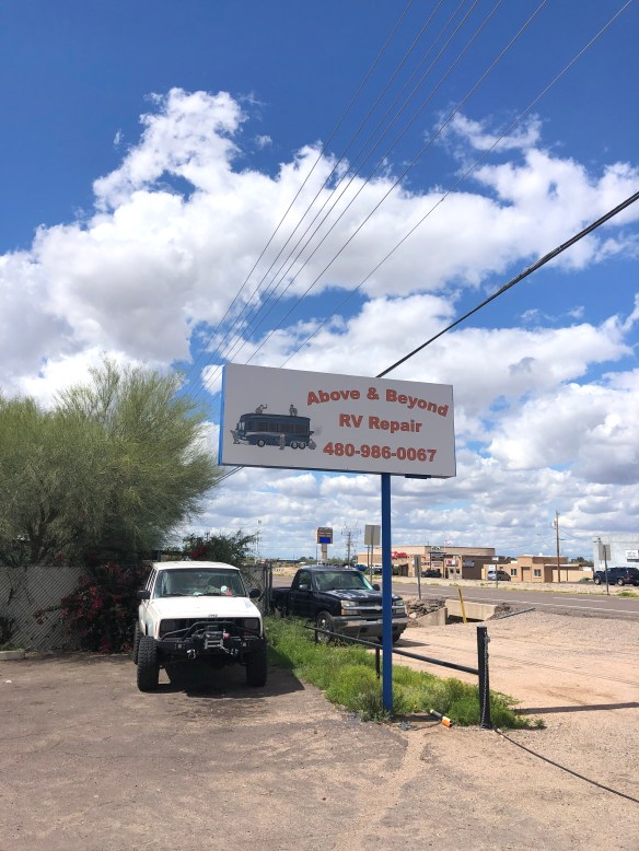 The following morning we dropped the coach off at Above and Beyond RV Repair in Mesa for the install. This family business was recommended by Battle Born, the lithium battery people.They wanted 3 days for install and the first night we should stay overnight out of the coach.“Should be finished Thursday morning” they said (this was on Monday).