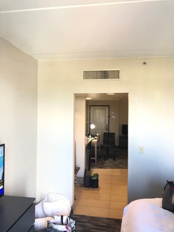 The first day was fine, although we did wonder why at “on the Border” restaurant next door half the tables were “reserved”, and it appeared to be every other table, then looking across at the bar, there was a reserved sign in front of every bar stool. ah-ha.The penny dropped and everything began to change. That evening they closed the restaurant in the hotel.