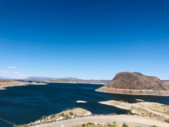 The lake or actually a reservoir was formed by the dam which controls the flow of the Rio Grande.