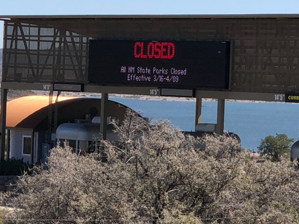 New Mexico State Parks are the least expensive of any we’ve encountered $10-$14 per night. Unfortunately we weren’t able to encounter them up close as all 35 NM State Parks were closed until April 9th and it was assumed they’d stay closed for a lot longer. At the same time we’d heard through the RV community that RV parks were closing or limiting capacity. So we called Elephant Butte Lake RV Resort and snagged a site in their campground. It was either $50 per night or $375 per month, so sight unseen we booked for the month.