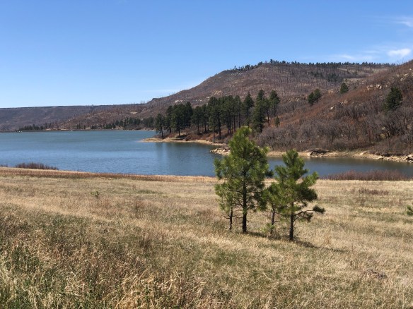 We found the lake but not before another GPS failure occurred. We found this lovely free spot on the lake, with only one other occupant. Solar and our managing it is doing well
