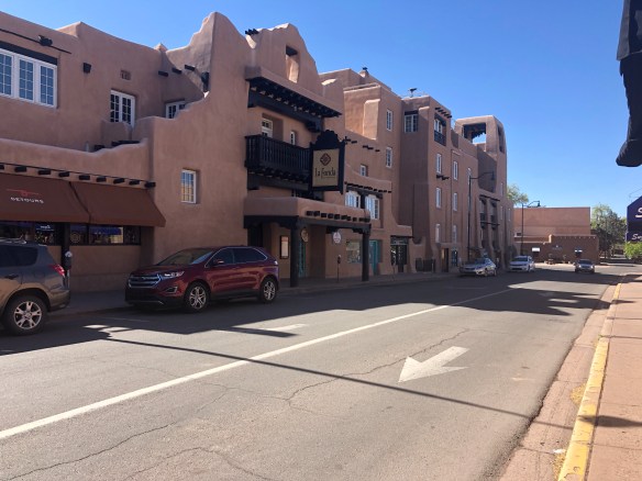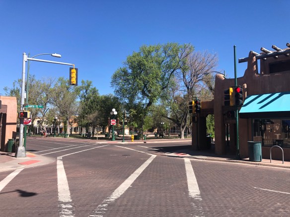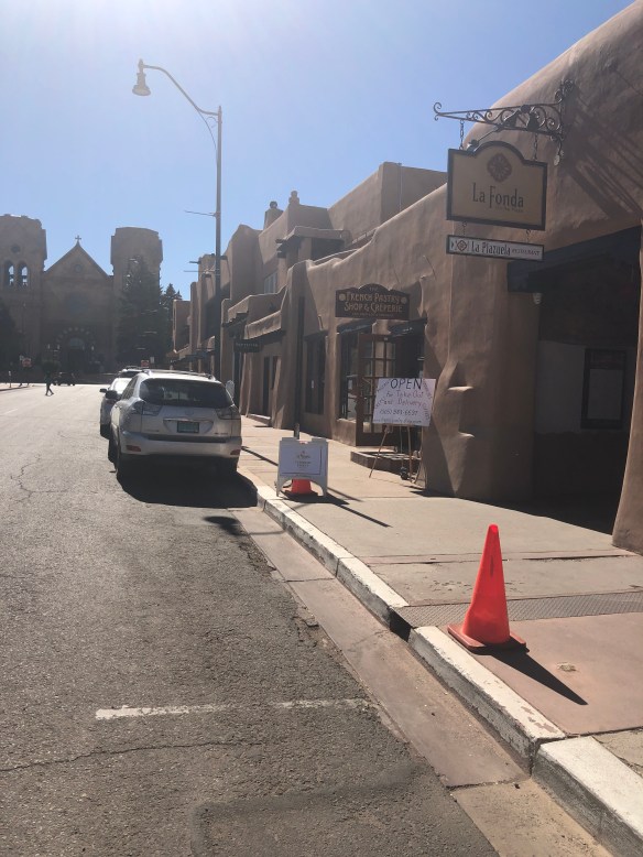 Drove around the empty streets of downtown Santa Fe. At least it was easy to park and stroll around to admire the architecture.