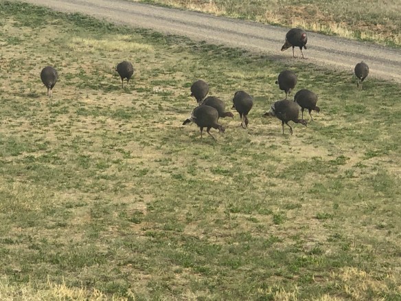 Looked out of the window one morning only to find a flock of 10 wild turkeys. They were relaxing after surviving the latest spring turkey hunt