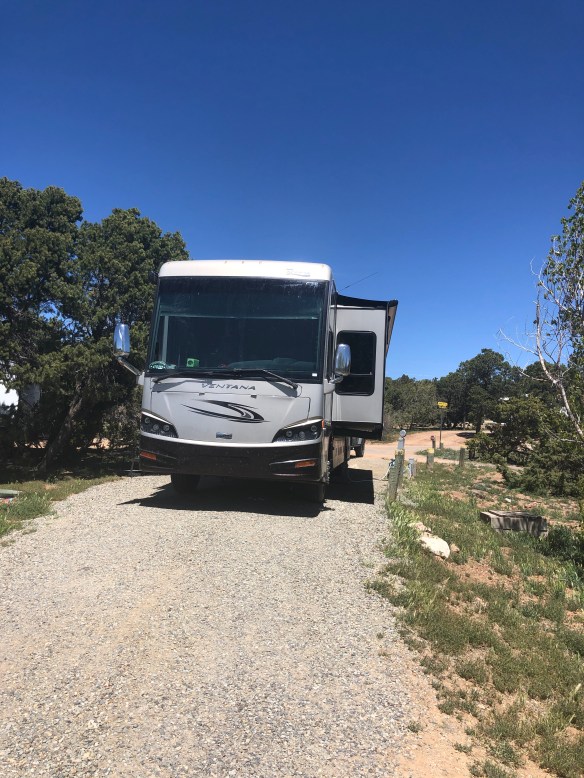 We completed our month at the Elephant Butte Lake Resort, and were reluctant to extend another month. New Mexico was not going to open the state for another month, temperatures were going up to the 90’s and we were getting bored. So we headed north to Santa Fe, driving through Albuquerque, a covid-19 hotspot, and wound up at the Ranchero de Santa Fe campground.