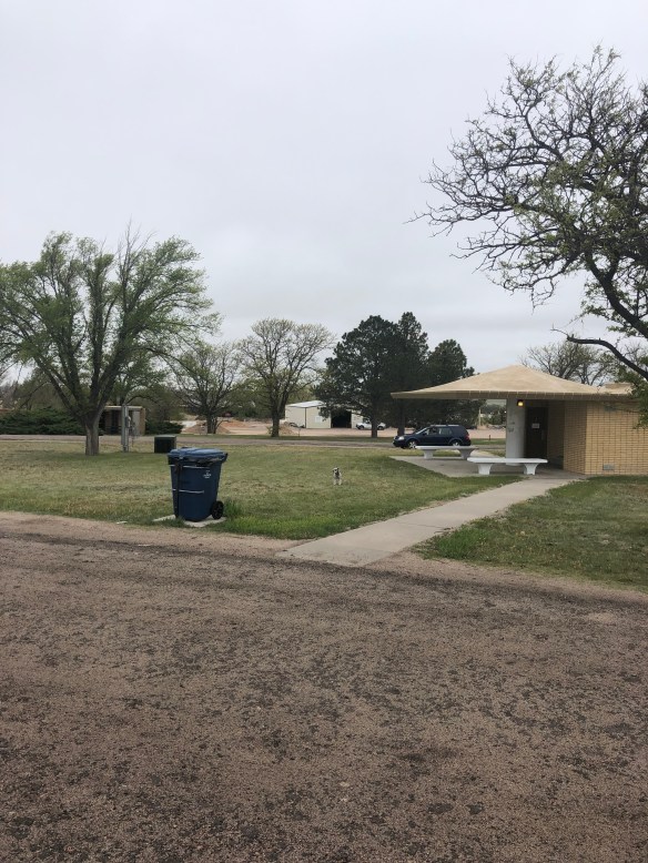 Cody Park in North Platte, our campground of choice, was a lovely park with many amenities, a railway museum, baseball field, huge lake, river, concession stand, an animal enclosure which included bison and deer and directly opposite the empty campground.