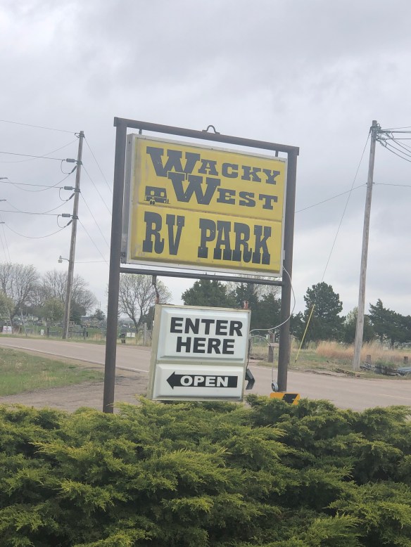 This news change our plans as we’d already got our next park lined up. No other choice but to stay at an RV park. Wacky West RV Park in Valentine NE were happy to accommodate us at $33 for a dump of a park full of permanent residents, but it was our only option