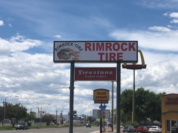 There are no pictures covering those 45 miles. We suddenly hit a fallen rock and heard a loud pop and a whoosh of air. We blew a tire. The TPMS system was alarming and there was nothing else it could have been. At this point we were on the downside of the mountain on a 10% grade with a 1000’ foot drop on the passenger side. The tire was the inner dual, so we decided to limp along at a very slow speed for those 45 miles. We had no cell service either. When we did we found a tire place that could change it out. We got there and they called all their tire suppliers and no tire could be found. So we called other tire companies in the 50 mile radius and they were looking up their dealers and nothing could be found. We finally found a tire place in the next town that could get a Toyo in our size, but it was in Salt Lake City and it could take 5 days. We have seen a lot of RVers are starting to use Toyo tires, so Toyo it was. It took 7 days. Steve did more research of Michelin Service/Tire Centers and actually found a tire store back over the mountain, just south of Sheridan that had 2 Toyo tires in stock (aaarrrggg!!!).