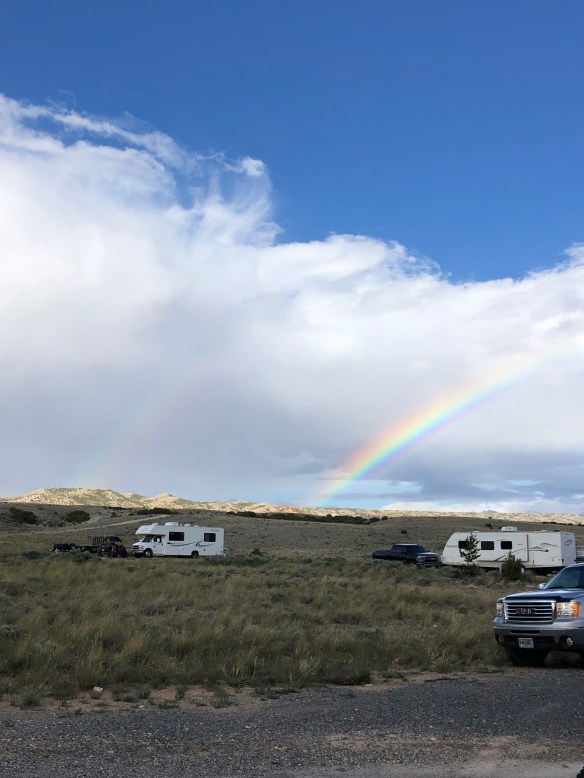 We finally pulled into a lovely campground just outside the town of Lovell, Horseshoe Bend. As it was a National Recreation area we were given our “geezer” discount and paid $8 a night, great, except there was no cell service, quite an important feature seeing as we were trying to track down a tire. Every day we’d drive 10 miles into town to get a status update and download a film for the evenings entertainment.