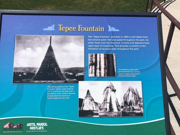 The Tepee fountain was built in 1909 to vent the steam from the hot mineral water, as the steamed water cools it forms layer after layer of travertine