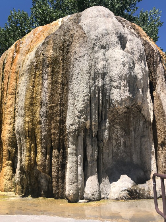 The Tepee fountain was built in 1909 to vent the steam from the hot mineral water, as the steamed water cools it forms layer after layer of travertine