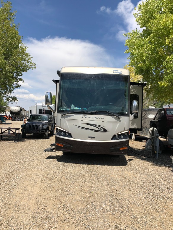 The weather has been so hot for the past couple of weeks, and Denver is in the nineties, so no hope of boondocking, it’ll be RV parks and State Parks for a while with at least electric hook-ups. Funny, everyone warned us, especially Coloradans, it can snow even in June, so we thought July should be safe. They neglected to tell us that 90-100 degree temperatures are not uncommon in July and August.