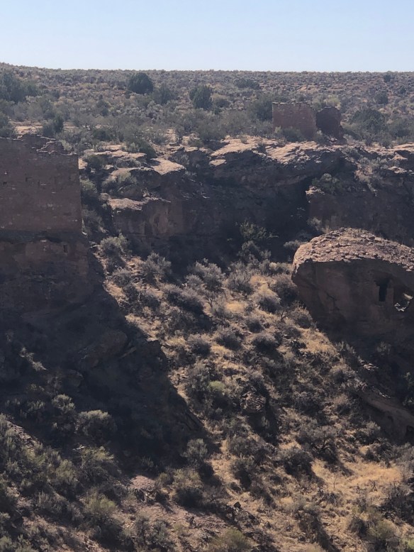 This was an archeological site where ancestors of the Pueblo Indian tribes lived 700 years ago. Many of the structures stood right on the canyon rim and not at all practical for safety or access. They were built as if they were protecting what was below, probably water, but no one is really sure.